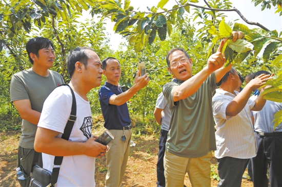 近日,迁安市林业局邀请省农科院专家深入到该市五重安乡、木厂口镇的村庄山场,实地为果农讲解当年嫁接当年丰产新法嫁接增产新技术,备受果农青睐,当天受训果农就多达200余人次。图为专家正在木厂口镇北营山场讲解时的情景。 李建军 吴海民 李晓松 摄