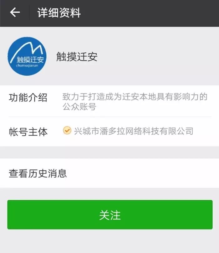 一个没有公信力的个人独资微信公众号,却大搞全国文明城市投票,简直贻笑大方。在此,望迁安市民注意,该信息为借助热点诱导关注的信息,投票毫无意义,关于“文明城公示投票”的信息请勿转发,已转发的请删除、取消关注,让这个注册于外地的公众号见证迁安市民的智慧!