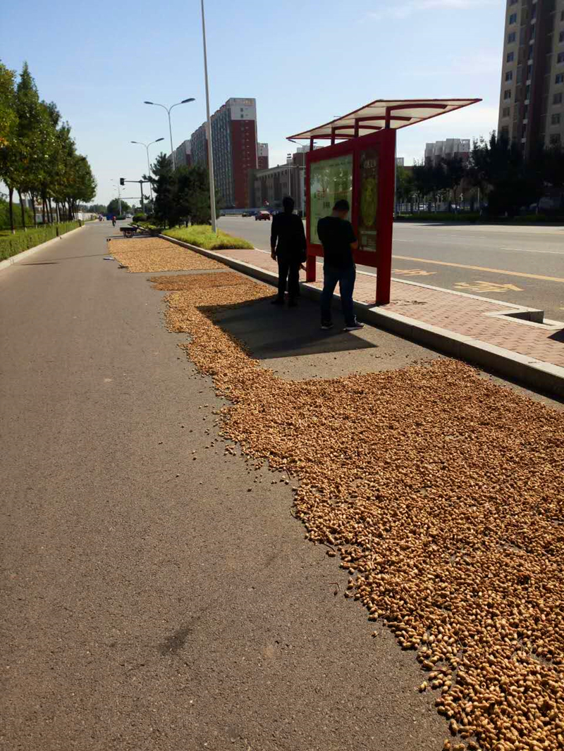 说起在马路上晒粮,不少晒粮的农户也很无奈。“我们都是平改的,原来还能在自家院子、房顶晒粮食,这搬到楼房里没地方晒啊”,正在马路上翻花生的徐大爷说,“如果能有个专门晒粮食的场地,我们也不会在马路上晒”。