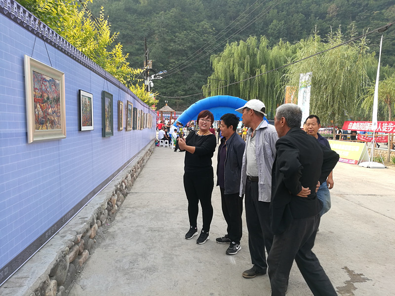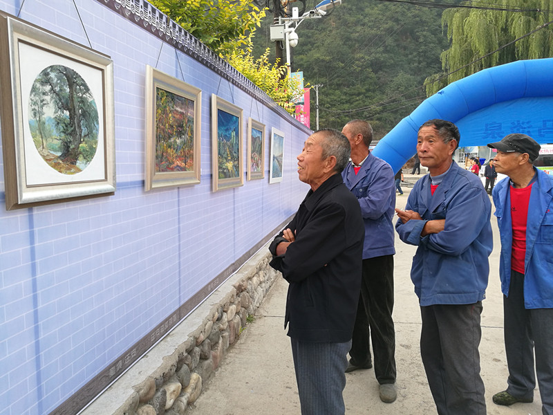 油画作品前不时吸引村民围观,大家对这些油画作品表现出浓厚的兴趣,有的三五成群在一幅作品前品评,有的一人默默观赏画作,细细品味,有人还在询问一幅作品的价格……在这个美丽的小山村,这些油画作品不仅提升了村庄的风景,也用独特的审美提升了农村群众的文化素养。大家纷纷对这些油画作品啧啧称赞!