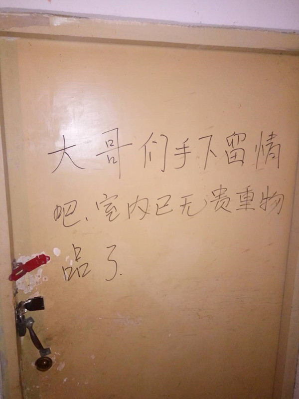 迁安九江小区业主致小偷:大哥们手下留情,室内已无贵重物品!